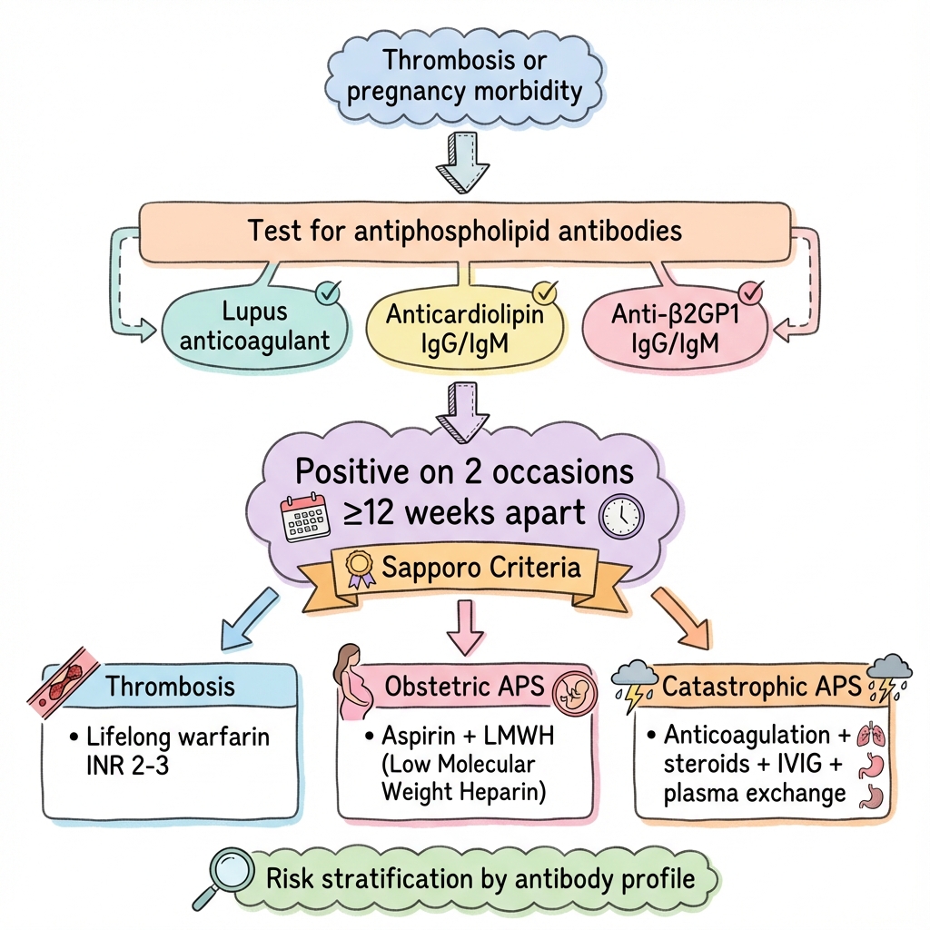 Treatment Pearl: DOACs are generally NOT recommended in APS - warfarin remains standard. Triple-positive patients especially should avoid DOACs.